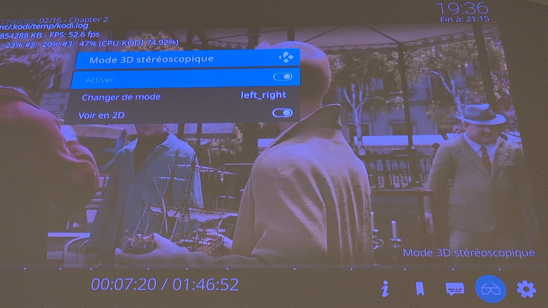 As soon as Kodi starts, the active shutter glasses go in 3D mode (I can see the blinking). However the movie is displayed as 2 halves left/right.