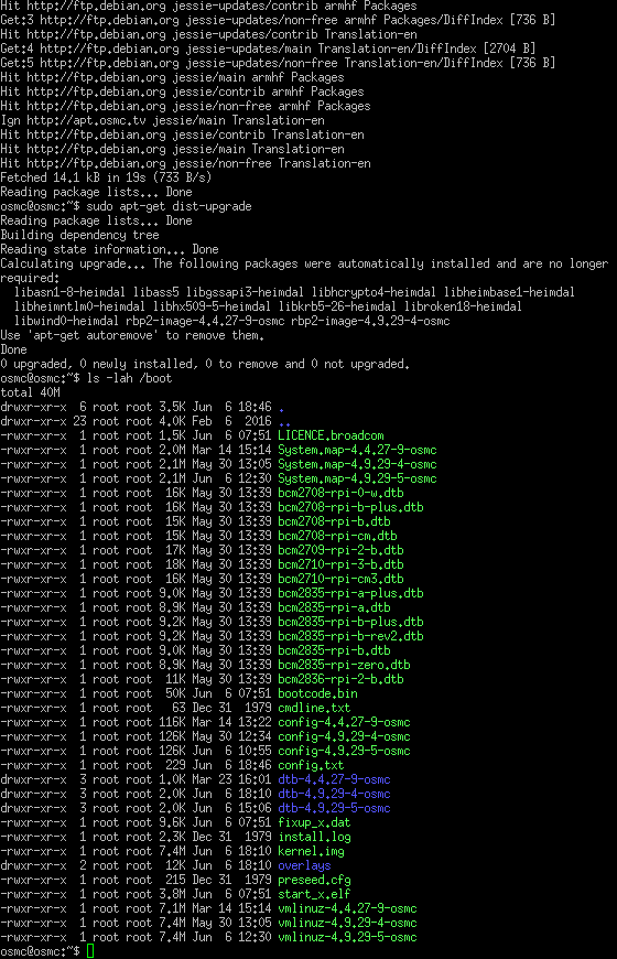 Still strange, try sudo apt-get install --reinstall rbp2-image-4.9.29-5-osmc