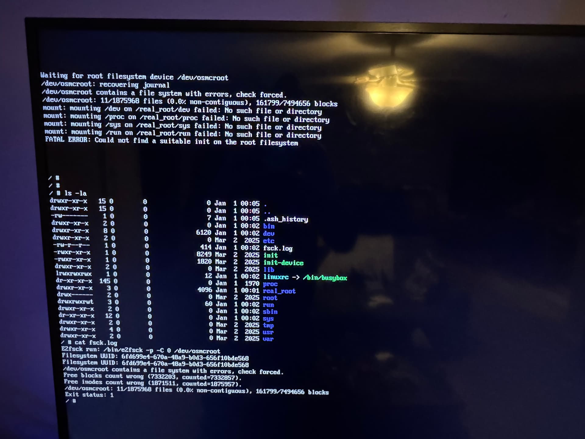 it doesn’t seem to be re-imaging at all, the light comes on, and then turns off when it boots directly to the CLI with the fatal error message, the recovery image doesn’t even give the blue screen with the timer giving the opportunity to power down, just straight to CLI