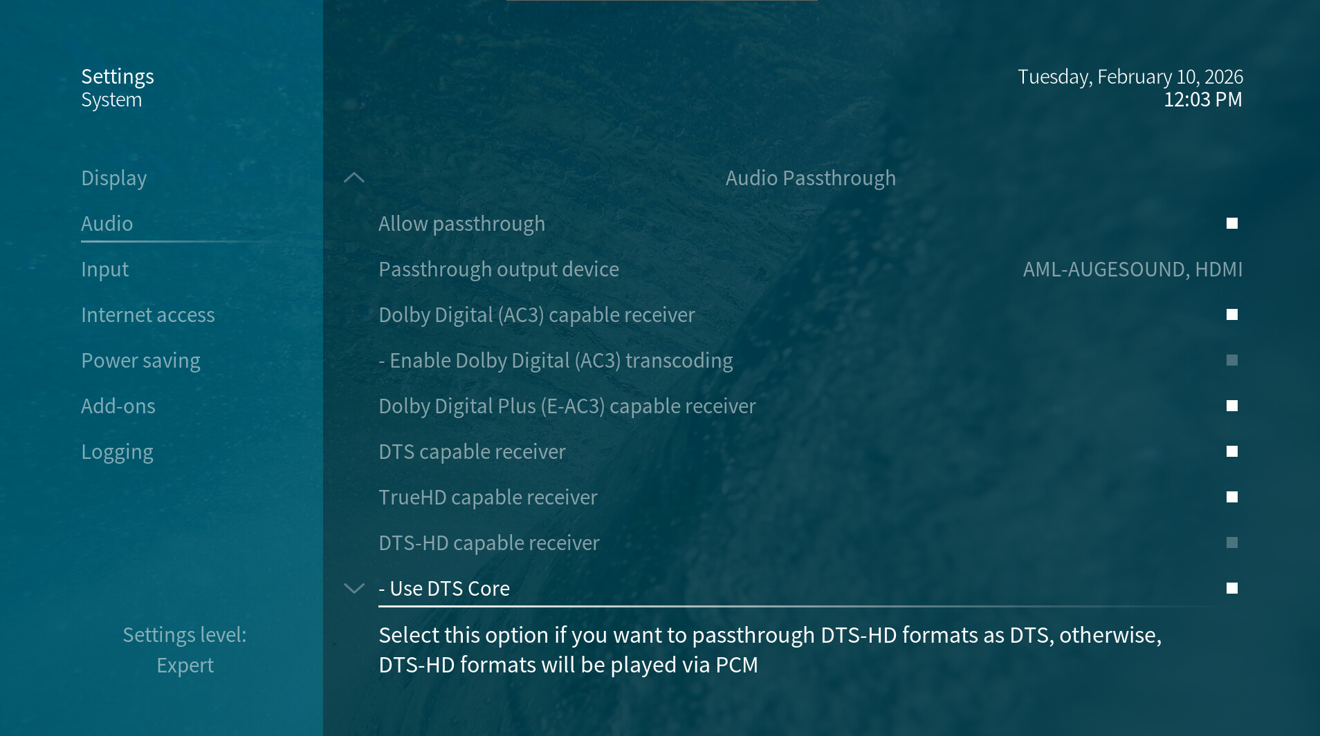 In addition, once passthrough is enabled on my system, the individual audio decoding / passthrough options become locked and cannot be selectively enabled for AC3 and DTS or disabled for other unsupported audio format (EAC3, DTS-HD, Ture-HD).